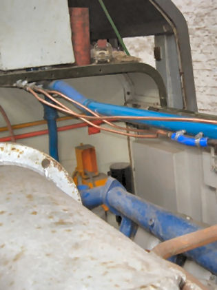 New copper bleed piping installed running from the bottom of the water header tank (left) and a general view of pipework systems and A end from the cab roof (right), 3rd April 2010 © D9531.com