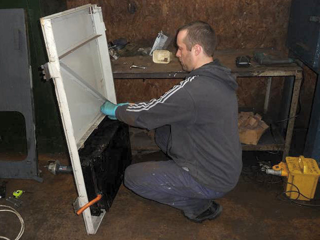 Adam fitting a headcode box to one of the nose end doors 05/02/2011 ...