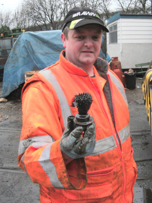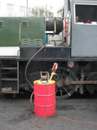 | ... new transmission oil being pumped back in (left) and the 'Shaving Brush'-like final drive oil plug (right), caused by the magnetic plug picking up small fragments of metal over many years 19/02/2011 © D9531.com |