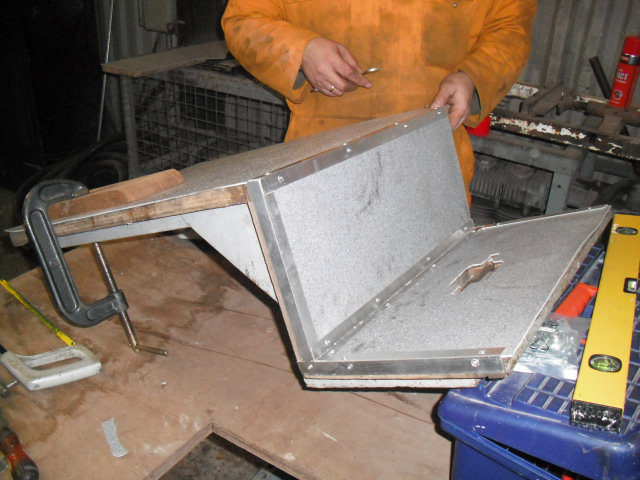 The 'bridge' floor piece with lino covering and edging strips being applied, 19/02/2012 ..