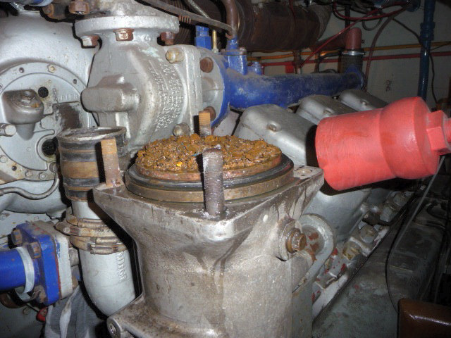 The accumulation of rust from within the coolant pipes