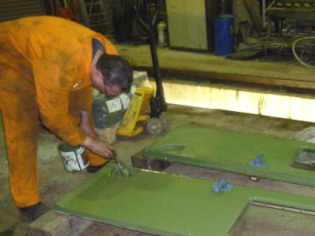 Graham glossing the cab doors |
