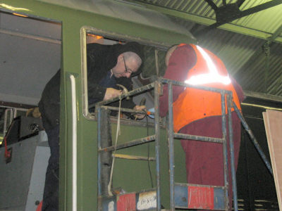 Back at the loco it was all hands on deck to get the finishing touches done, this mostly involved cosmetic work today and Jason made a start cleaning up the aluminium window frames. Joining the crew were Dave Pendleton who had come down to help out from Castlecroft yard and Tom Lahaye, a good friend of the East Lancs diesel group, who had travelled from the Netherlands.