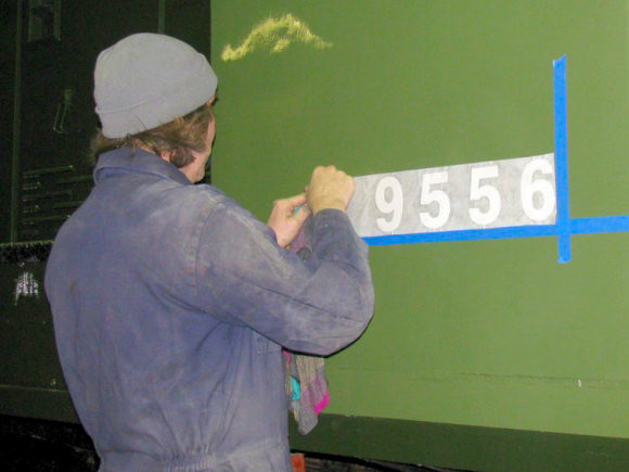Gilbert does the honours, applying the number D9556 to the cabside