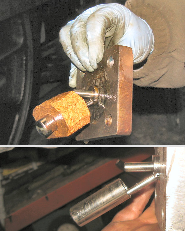 | Cork float added to the coolant level switch to increase buoyancy (top), 10/02/2012 © D9531.com The original float arm (above) was ok when the loco was static but was giving a false reading and causing the power unit to shut down whilst moving with the engine running. |