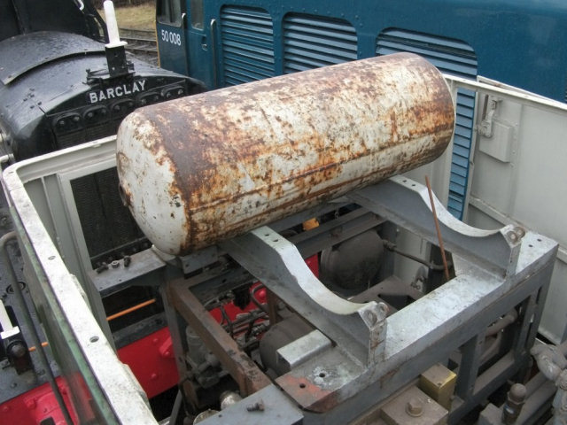 Brake frame top temporarily replaced, incorporating a single tank for the auxiliary air supply - the second saddle will be removed as it is not needed ...