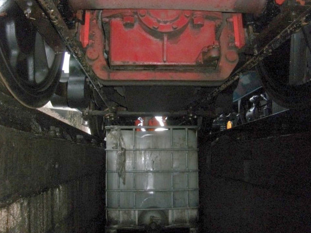 | IBC in position underneath the transmission to collect old oil ... |