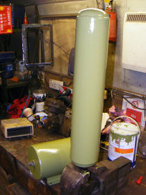 ... Air timing tanks in rusty ex-loco condition, cleaned and primed, then finally