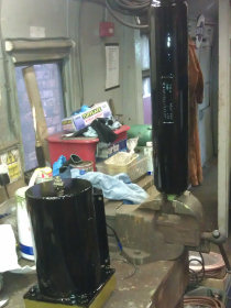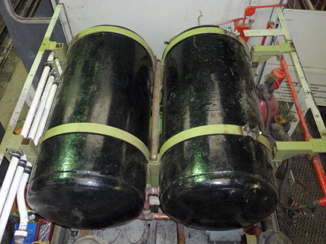Main reservoir air tanks finally fixed down after strap adjustments, 29/10/2011 ..