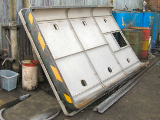 A frosty 'B' End roof section stood against the shed (left) and being craned onto the loco (right) ...