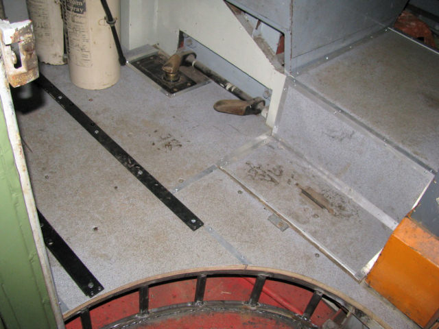 The 'bridge' floor piece with lino covering and edging strips being applied, 19/02/2012 ..