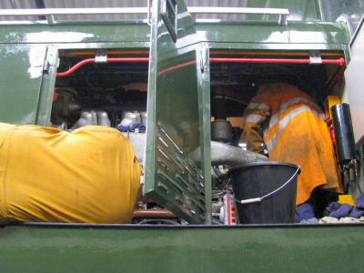 Alan decided that he needed better access to make final governor adjustments so asked Jason to remove the A end horn box from the top of the bonnet which is situated directly over the governor. In the end the governor had to come out again and was further tweaked on a nearby vice.