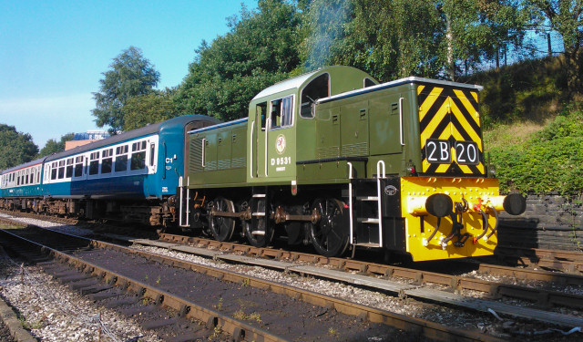 The next run was faultless to Rawtenstall, back to Bury and up to Heywood, however we noticed the loco was getting lazy achieving full RPM in 2nd stage. On the 14:30 departure from Bury again it ran ok, then out of Irwell Vale it would not rev any higher than 1200rpm in 2nd stage and, with road speed dropping and temperatures rising, we limped into Rawtenstall at around 15mph. We decided to see if it was any different on the return trip before making the decision to come off at Bury or not - the gradients to Heywood wood destroy it in this condition. With it being no different back to Ramsbottom, the call was made and at Bury D9531 was replaced again by D1501. With no time or resources to investigate and repair for the following day's service, it was decided the best and safest option was to use D1501 instead.